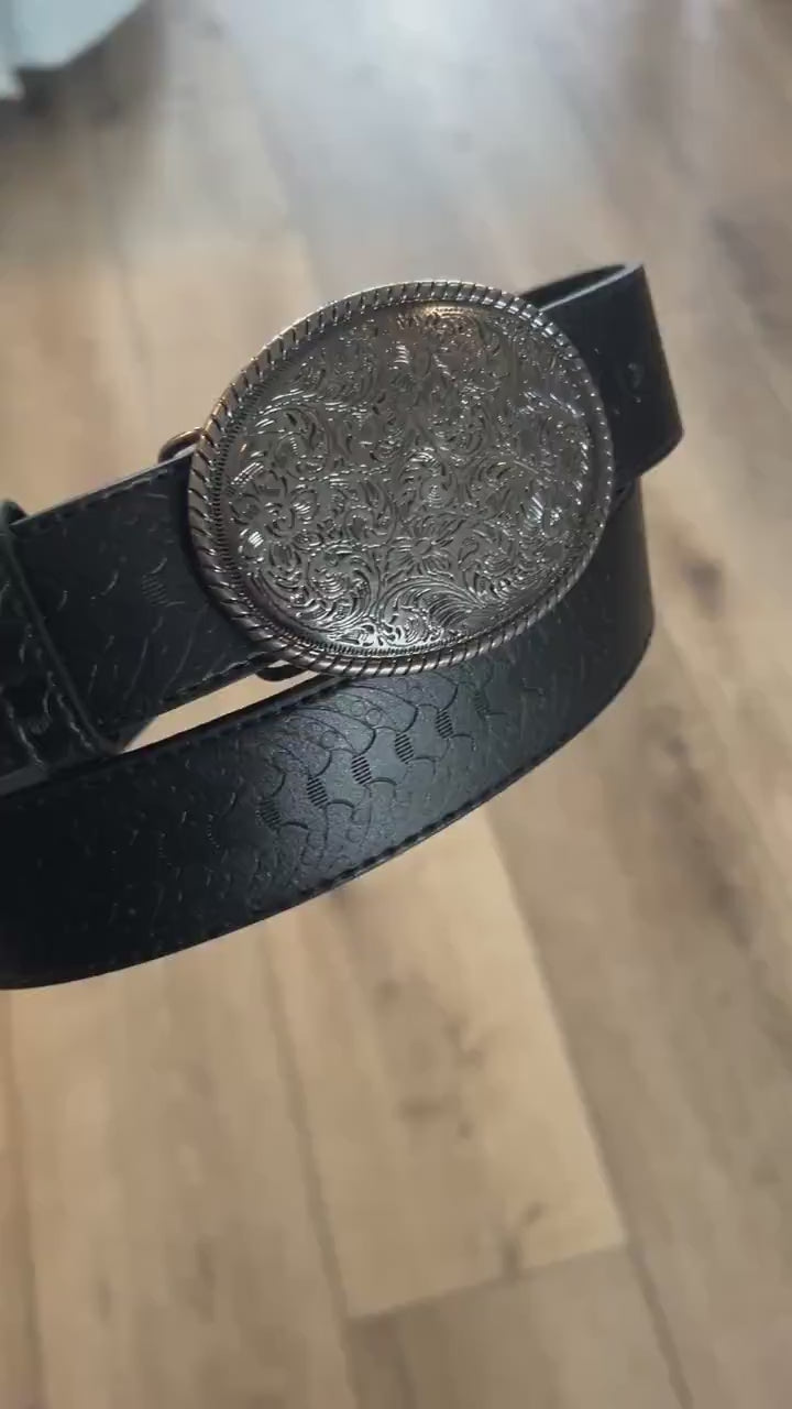 1.5'' Wide Black Tooled Leather Belt Strap